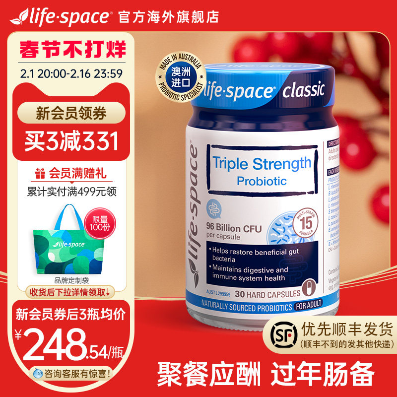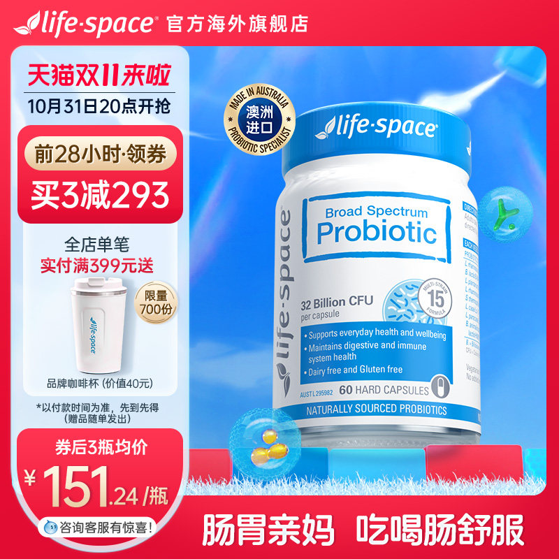 券 30元销量400[下拉详情抢百亿]澳洲life space广谱益生菌养肠道30粒+15粒任选
