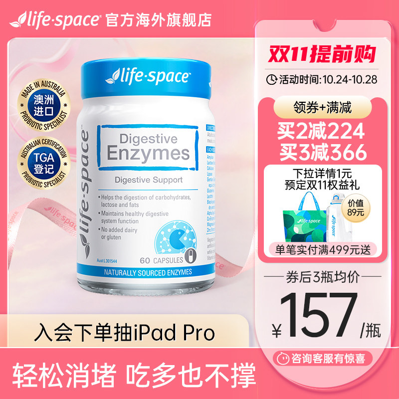 券 40元销量100澳洲进口life space消化酶益生菌大人男女肠胃肠道活菌食品胶囊
