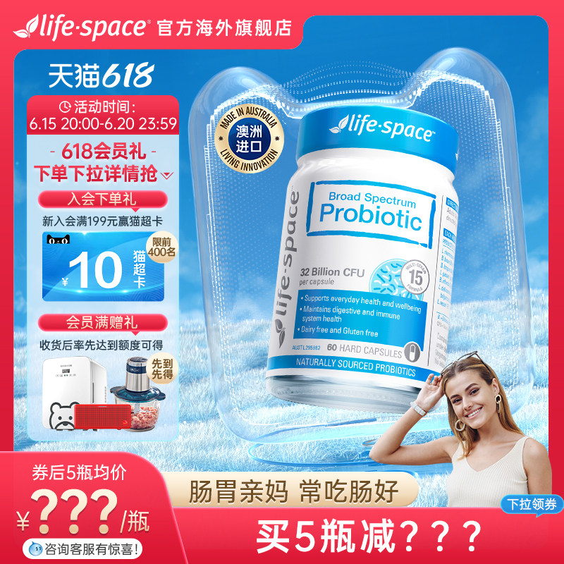 券 60元销量300澳洲进口lifespace广谱肠道益生菌+B420益生菌身材益生菌活菌胶囊