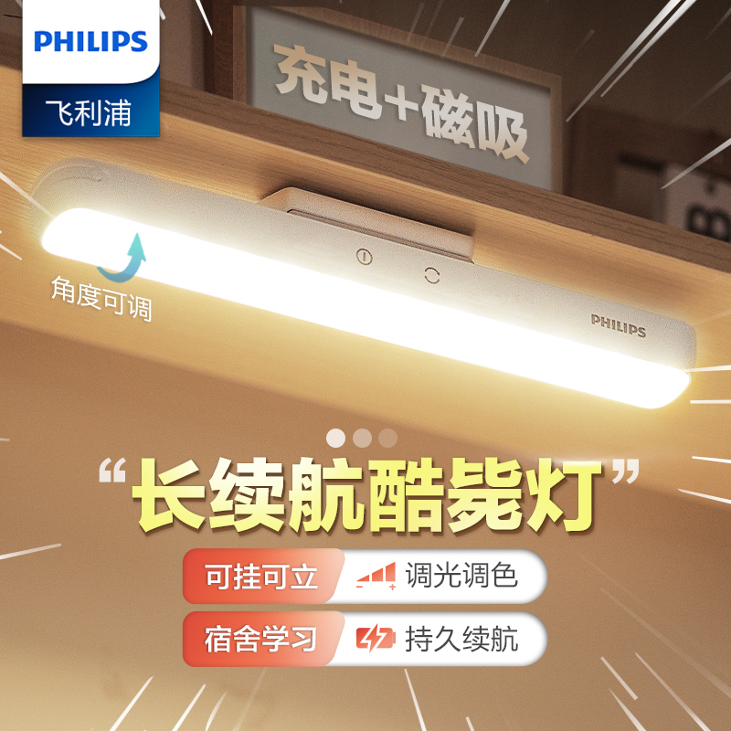 券 10元销量6飞利浦酷毙台灯学习专用护眼宿舍书桌吸顶充电照明床头灯磁吸吸附