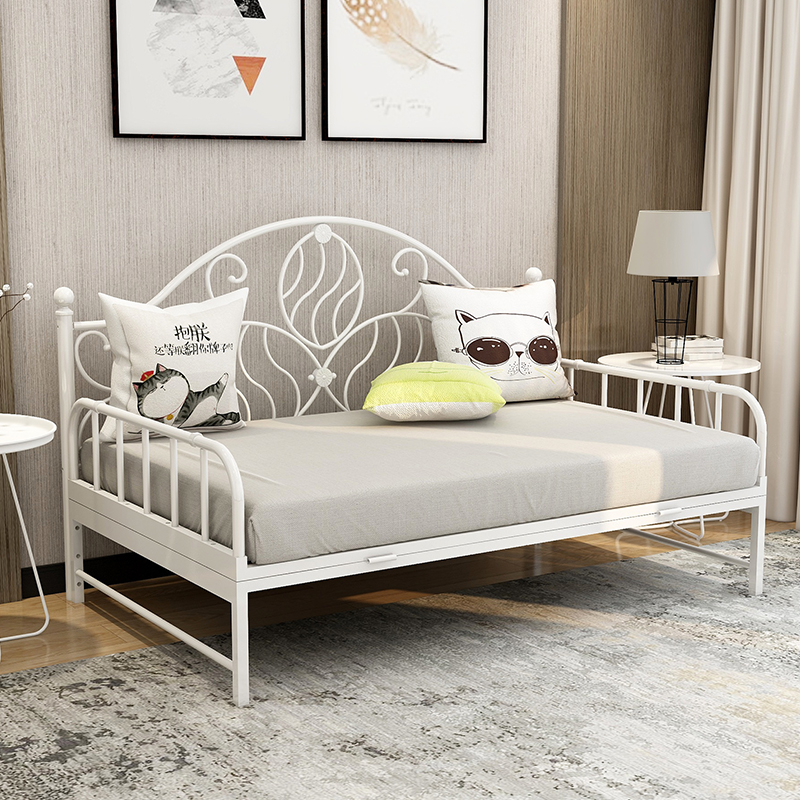 欧式铁艺沙发床折叠两用经济型可推拉床铁床简约单人沙发床小户型