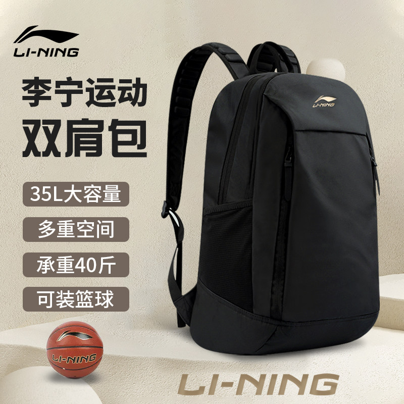 券 3元销量400李宁双肩包男书包女篮球运动大容量高中学生户外旅行轻便电脑背包