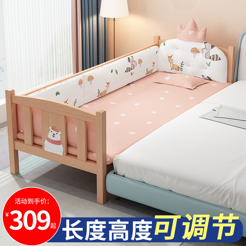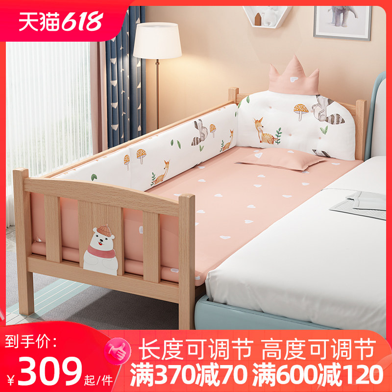券 100元销量100牧童坊儿童床拼接床男孩女孩公主全实木加宽婴儿小床拼床拼接大床