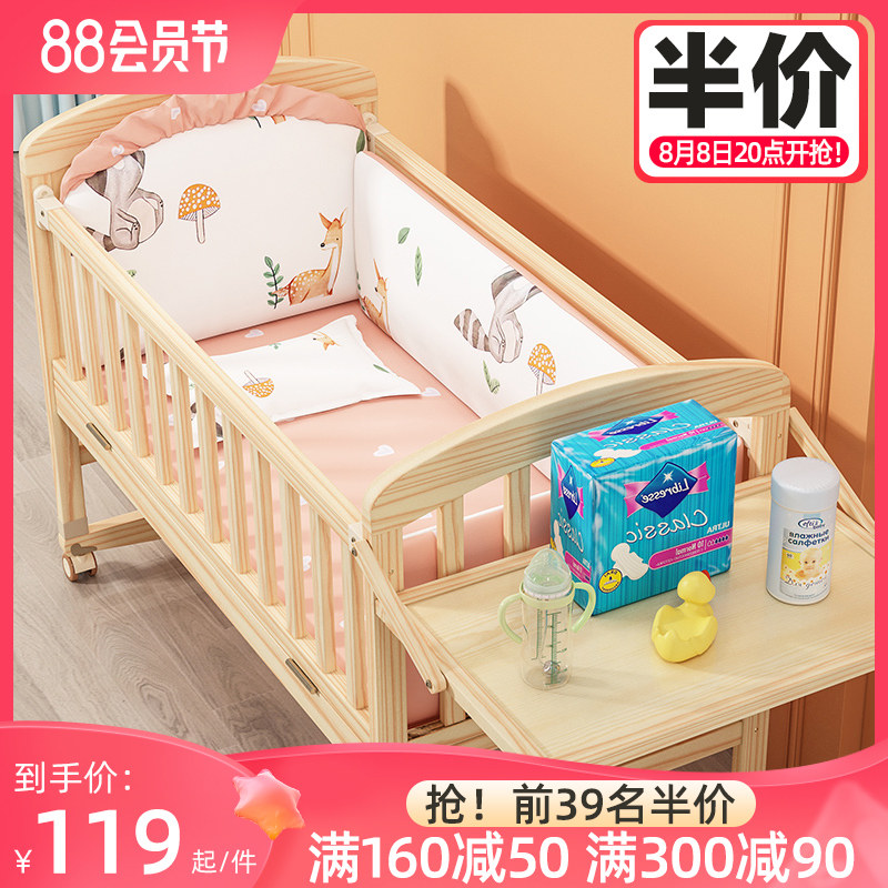 券 80元销量10牧童坊婴儿床宝宝床可移动新生bb小床儿童多功能实木摇篮拼接大床