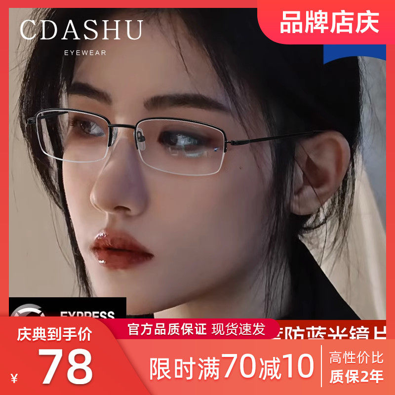 券 10元销量100蔡司金丝半框近视眼镜女超轻纯钛高级感御姐眼睛框防蓝光可配度数