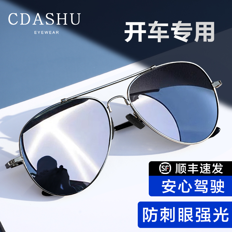 券 10元销量100感光变色偏光墨镜女款防紫外线日夜两用太阳眼镜男士开车专用驾驶