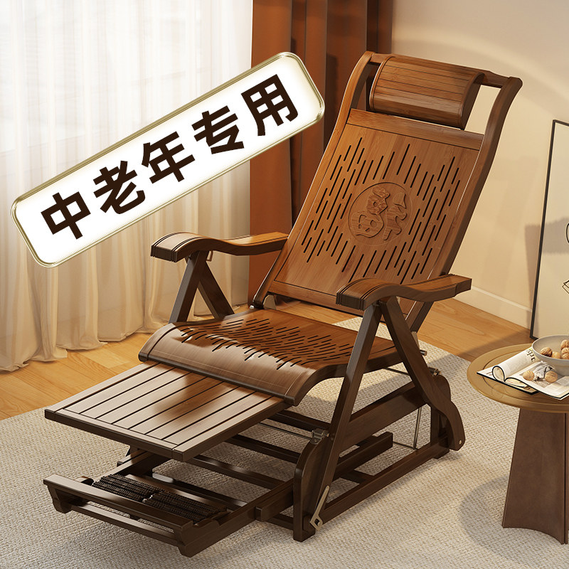 券 25元销量500躺椅午休折叠式老人大人阳台家用休闲懒人睡椅成人凉椅竹摇摇椅子