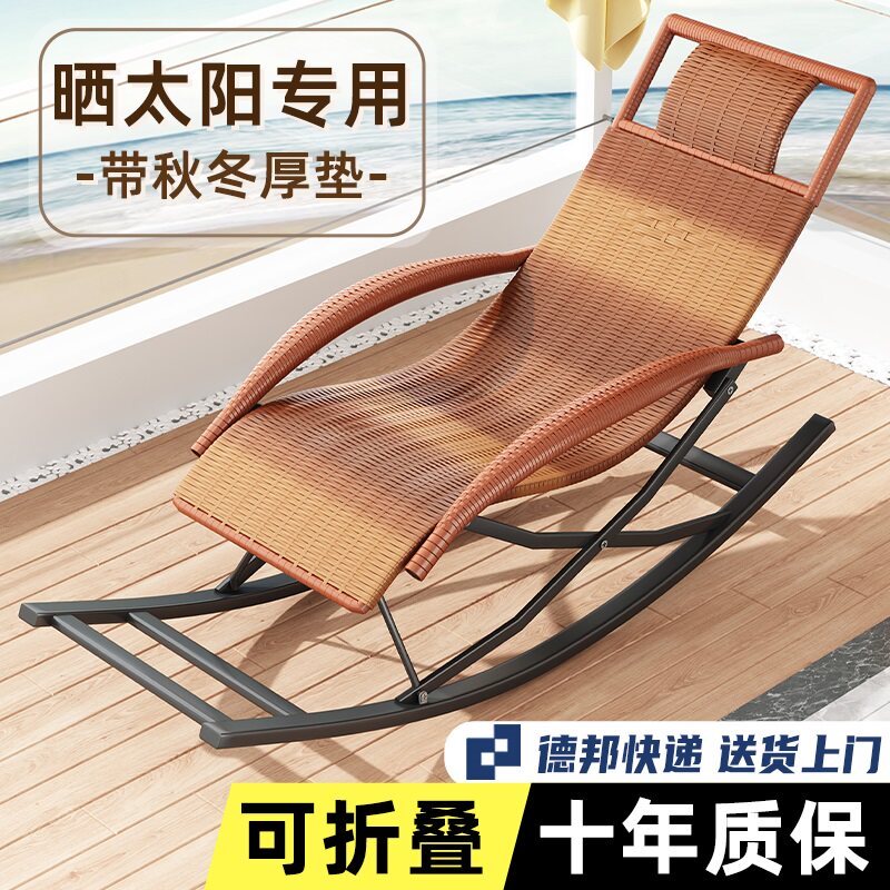 券 25元销量78阳台休闲摇摇椅家用客厅可折叠躺椅老人午休午睡逍遥椅藤椅靠背椅