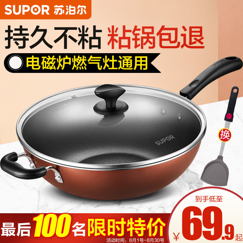 苏泊尔不粘锅炒锅家用炒菜锅电磁炉专用燃气煤气灶适用锅具平底锅