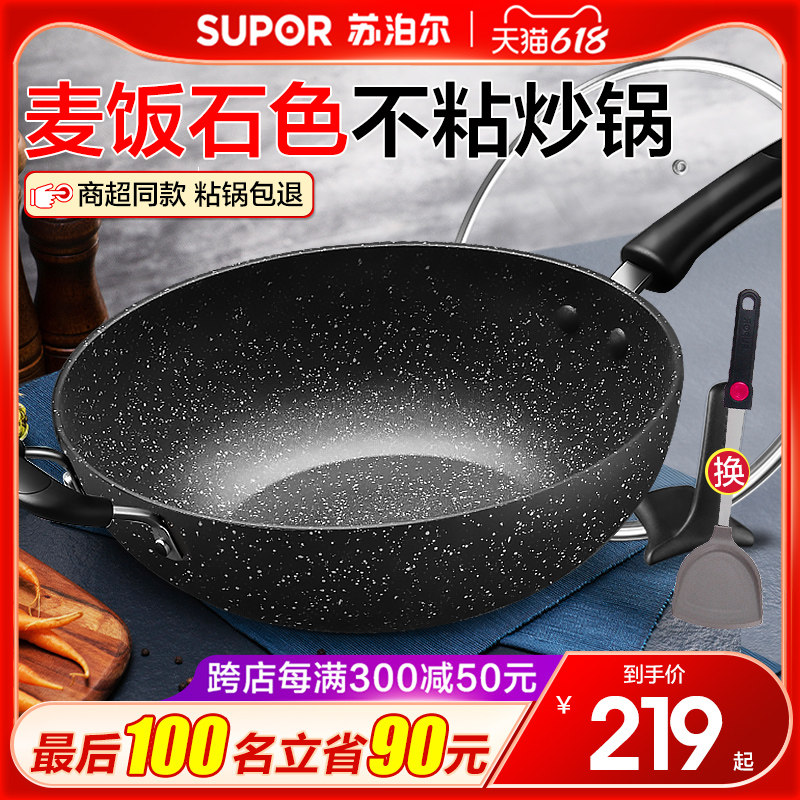 苏泊尔不粘锅麦饭石炒锅具家用平底锅官方旗舰店电磁炉适用炒菜锅