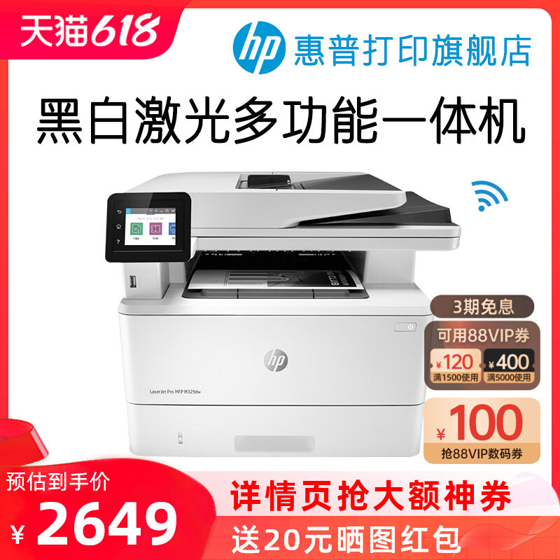 券 1000元销量23新品HP惠普M329dw黑白激光打印机自动双面无线WIFI复印扫描一体机高速多功能MFP 4104dw/fdw/M427dw/M429fdw