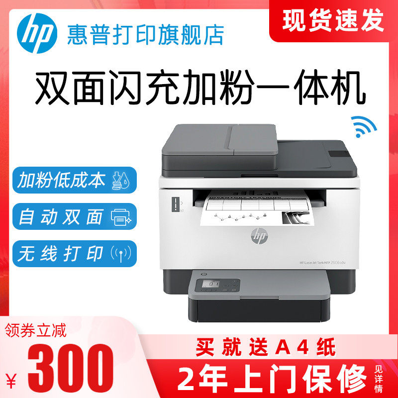 券 950元销量100惠普Tank2606dw黑白激光自动双面打印机一体机sdw手机无线wifi网络复印扫描A4小型家用办公专用原装加粉sdn