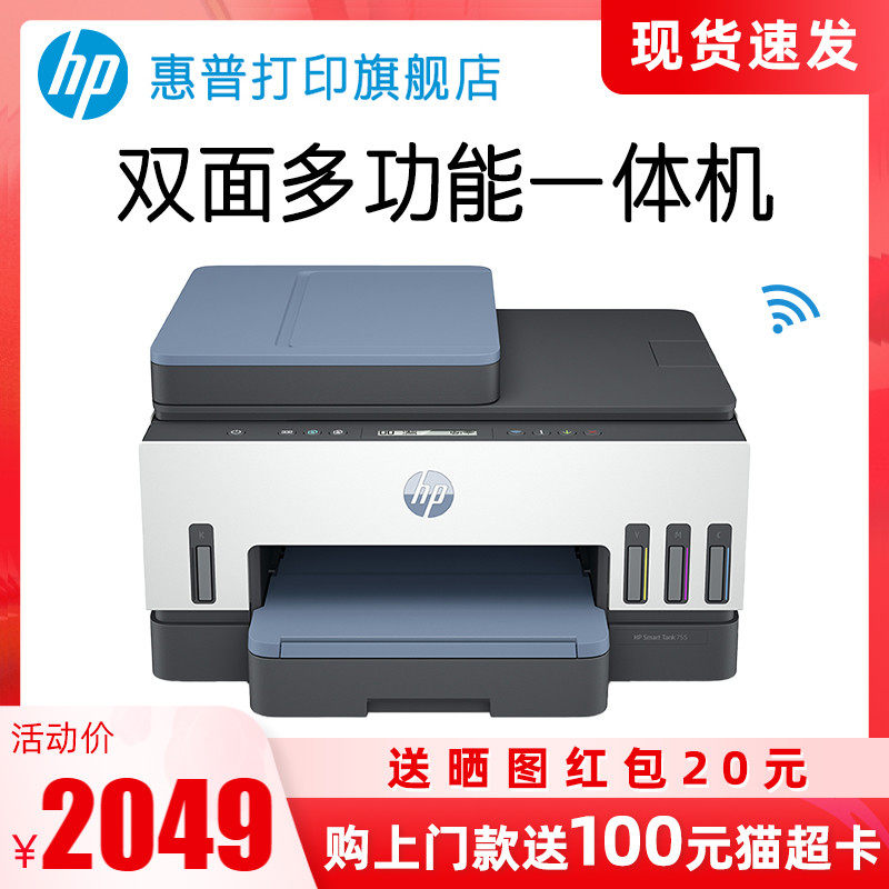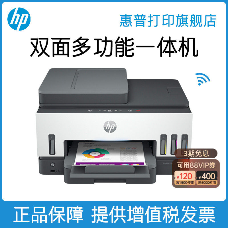 券 300元销量100惠普tank755彩色手机无线家用学生迷小型墨仓式连供自动双面打印一体机复印扫描家庭办公室喷墨照片A4商务云