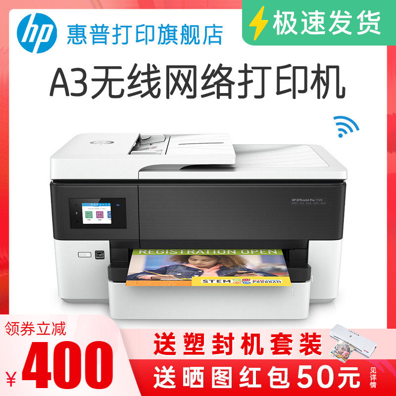 券 400元销量35惠普OJ7720彩色喷墨A3打印机复印扫描传真机四合一体机无线网络A4自动双面办公商用商务7740高清专业照片7730