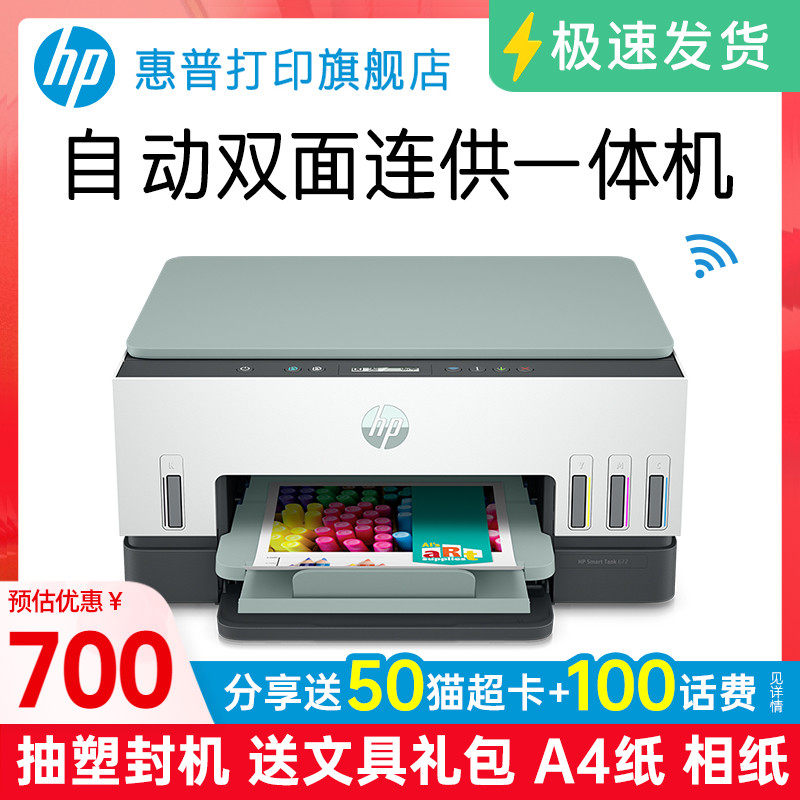 券 600元销量3惠普tank672彩色手机无线wifi家用小型墨仓式连供自动双面打印机一体机复印扫描A4办公室云商用喷墨照片学生