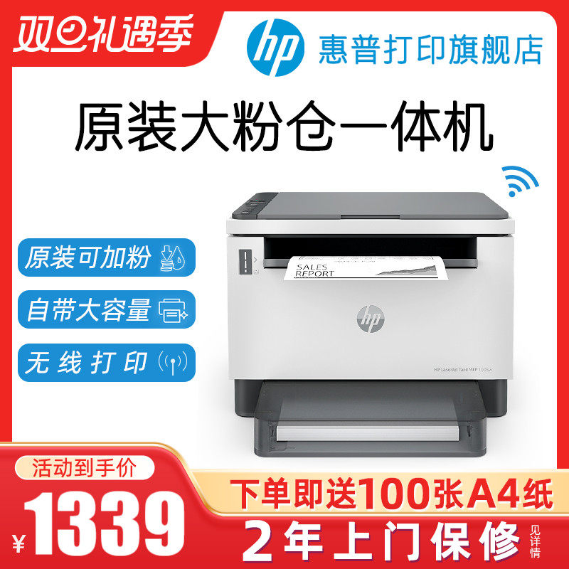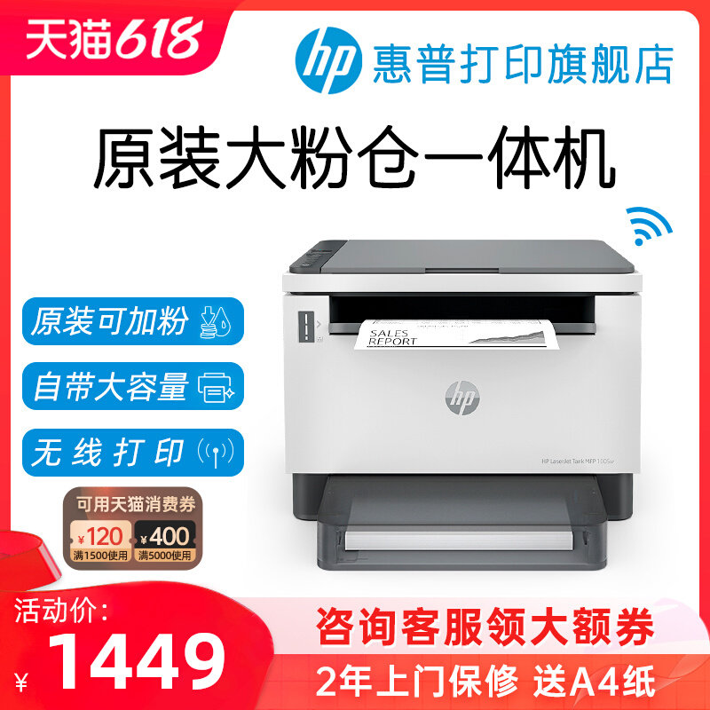 券 450元销量44惠普Tank MFP 1005w黑白激光多功能打印一体机无线wifi手机可连接A4复印扫描三合一家用办公专用商用商务小型