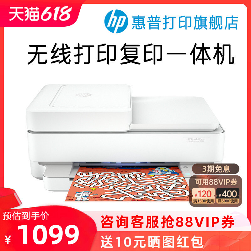 券 200元销量46新款HP惠普6478彩色喷墨打印机一体机无线wifi文档家用A4办公黑白连续复印扫描自动双面打印机5278升级