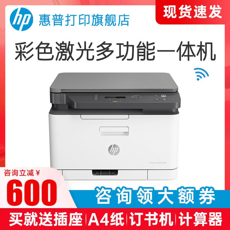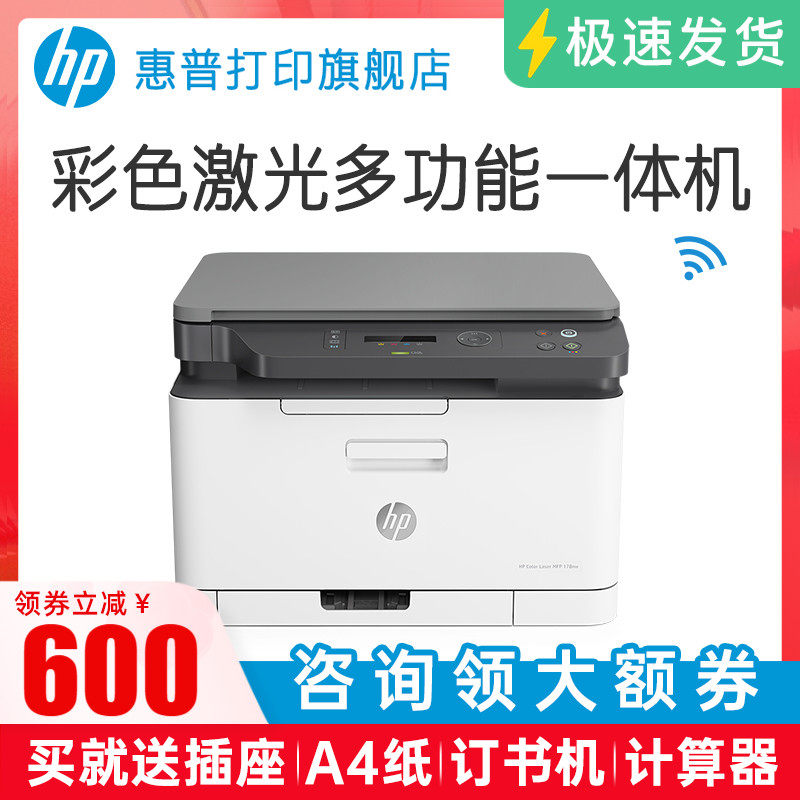 券 600元销量100惠普HP Color Laser MFP 178nw彩色激光多功能打印机一体机复印件扫描A4商用商务无线wifi网络办公室三合一