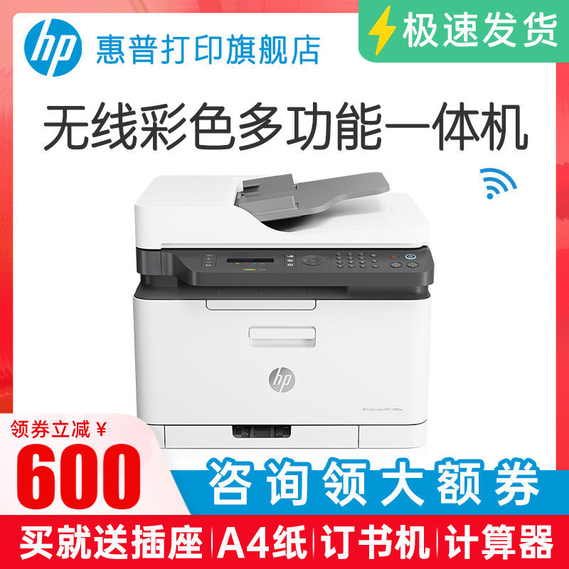 券 600元销量100惠普Color Laser MFP 179fnw彩色激光多功能打印机一体机连续复印件扫描传真无线wifi网络办公室商用A4四合一