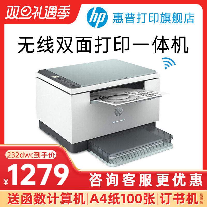 券 201元销量5000惠普M232dwc黑白激光无线wifi网络自动双面打印一体机多功能复印件扫描A4家用小型办公室专用商务手机三合一