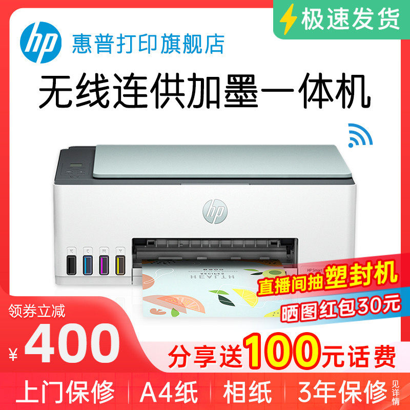 券 400元销量10惠普Smart Tank 582墨仓式连供彩色家用小型打印复印扫描一体机喷墨手机无线wifi学生作业a4照片家庭办公专用