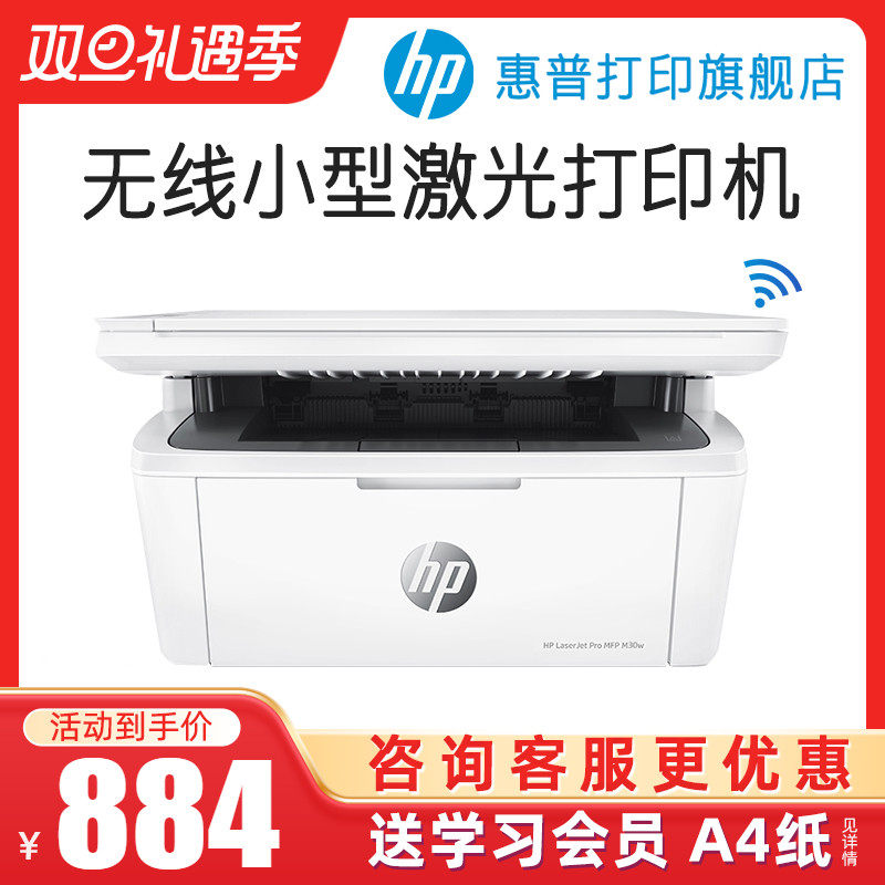 券 500元销量32HP/惠普M30W黑白激光多功能无线WiFi网络手机打印机一体机A4复印件扫描三合一小型迷你家用办公专用可连接