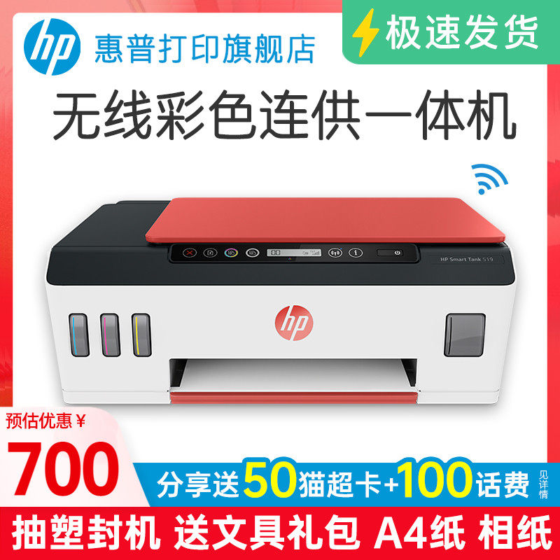 券 550元销量500HP惠普tank519彩色手机无线家用学生迷小型墨仓式连供打印一体机复印扫描411家庭办公室可连接喷墨照片A4商务