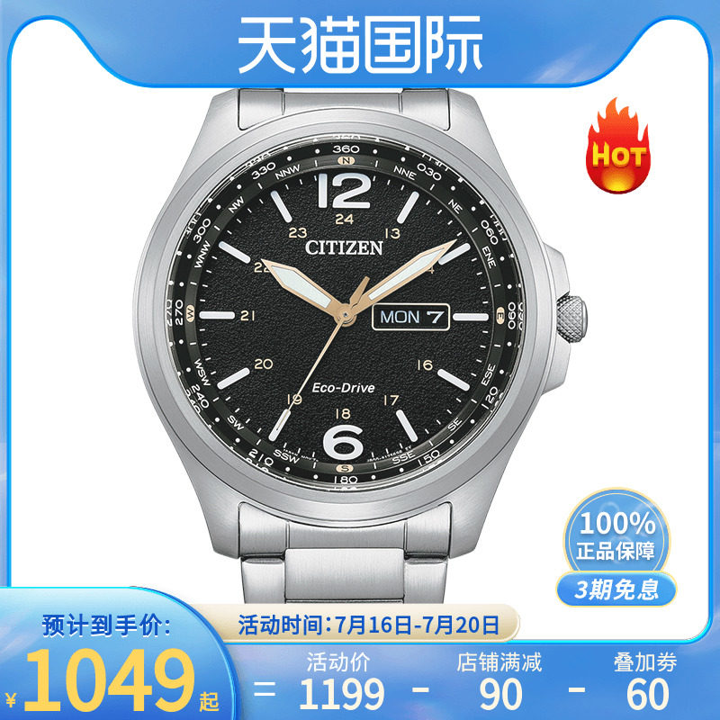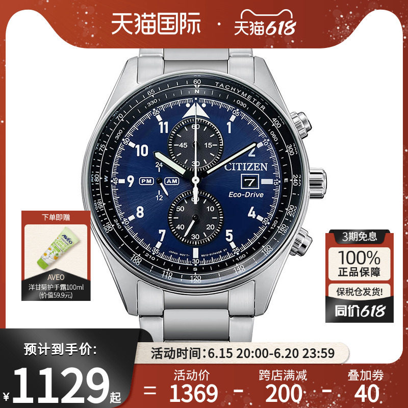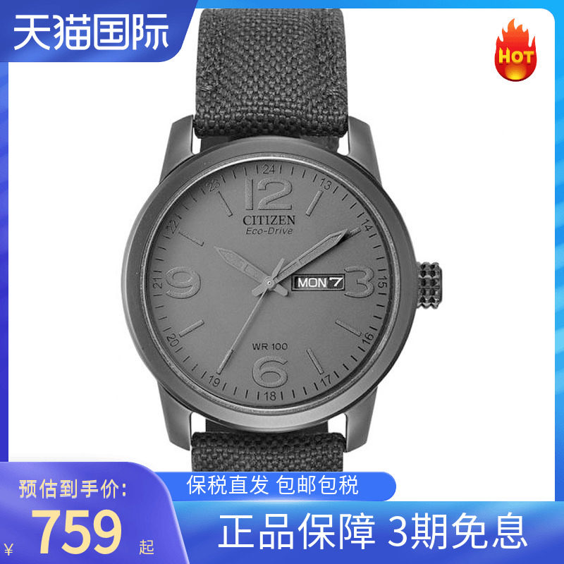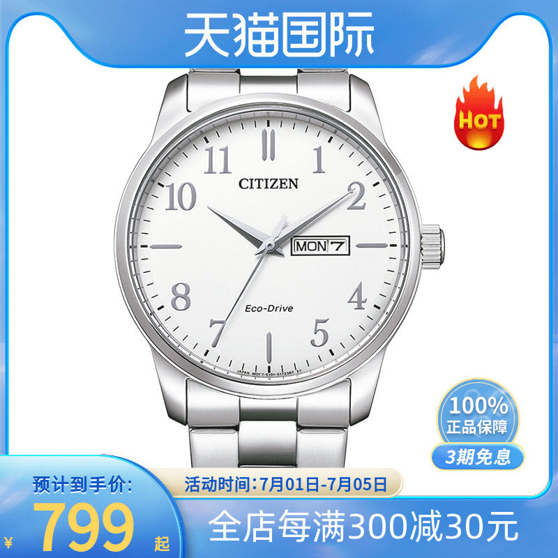 券 10元销量6citizen西铁城男士手表日本光动能学生复古夜光防水腕表BM8475-00