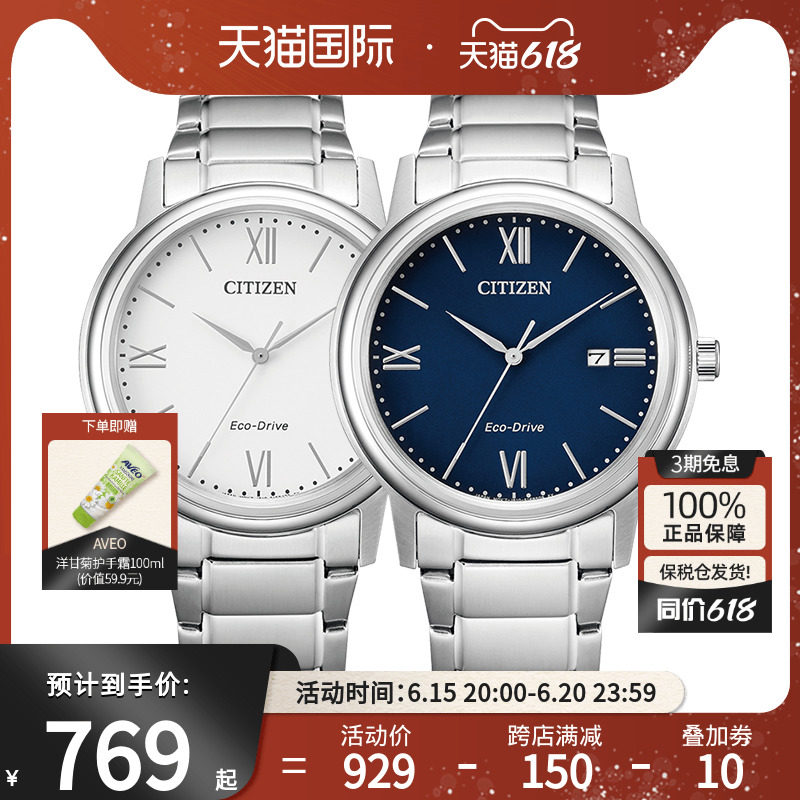 券 40元销量21西铁城男女士手表光动能日本正品时尚防水钢带皮带情侣腕表AW1231