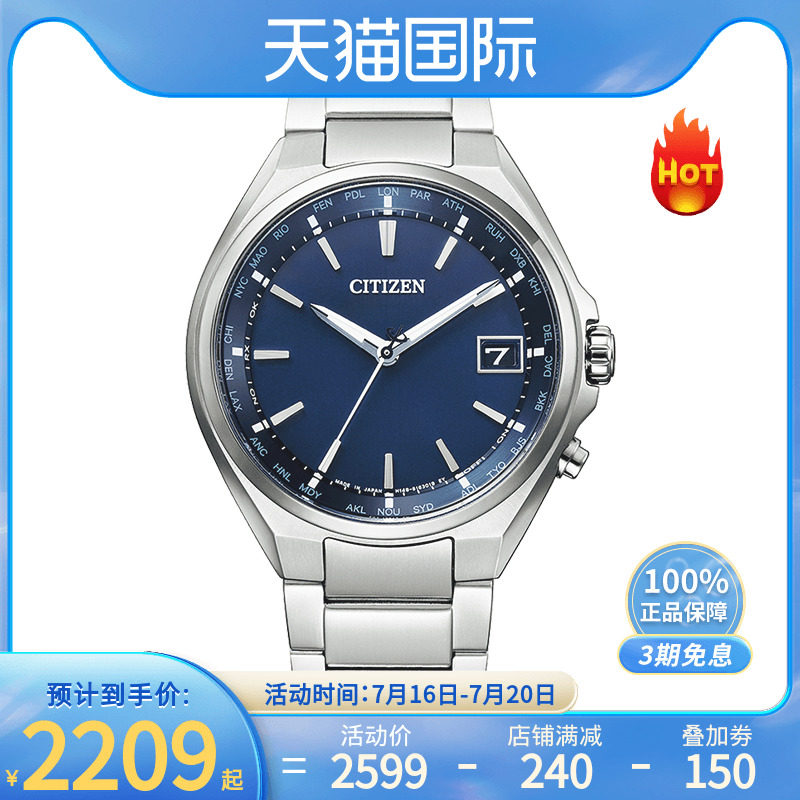券 150元销量4citizen西铁城手表男蓝天使日本潮流电波钢带防水腕表AT8020-54L