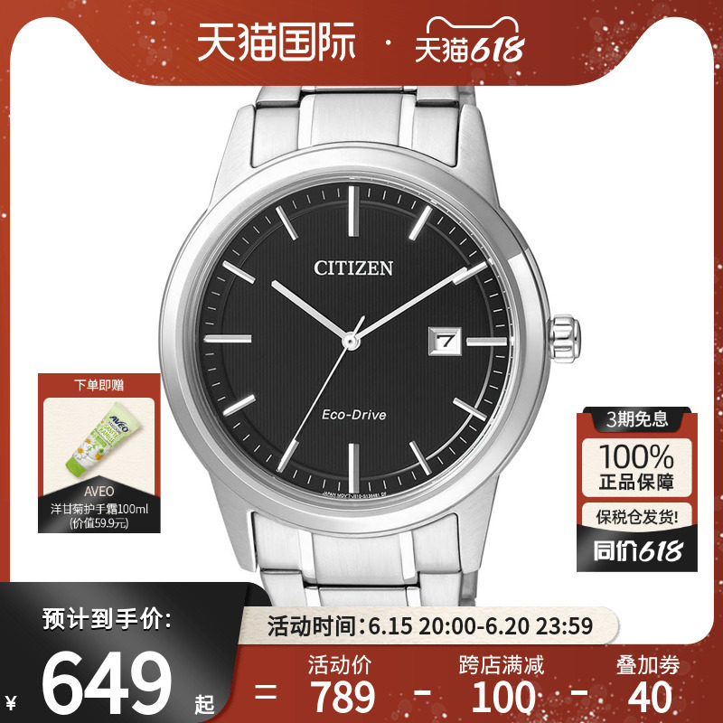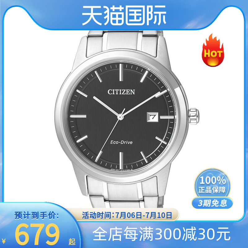 券 20元销量4citizen/西铁城光动能手表男新款正品商务休闲钢带腕表AW1670-82A