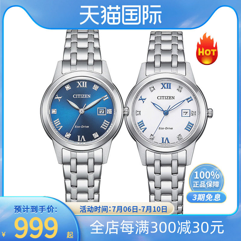 券 60元销量4西铁城手表光动能日本新款正品气质时尚商务女士钢腕表FE1240-81A