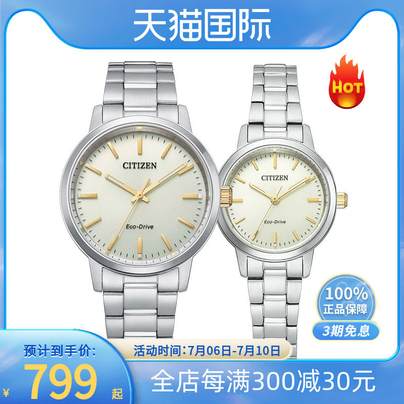 券 80元销量10citizen西铁城光动能男女手表正品休闲简约情侣钢腕表BM8550-81A