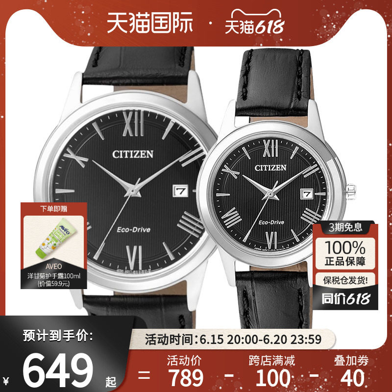券 80元销量10西铁城男女士手表光动能日本正品时尚防水钢带皮带情侣腕表AW1231