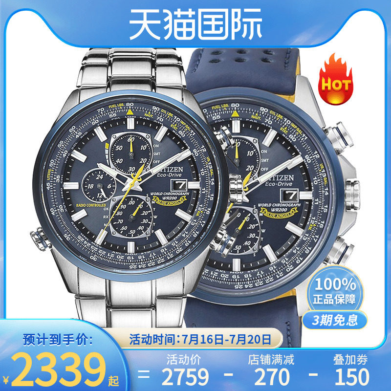 券 10元销量19citizen西铁城手表男蓝天使日本潮流电波钢带防水腕表AT8020-54L