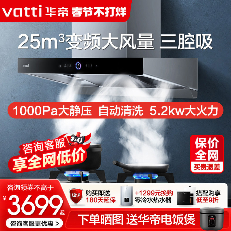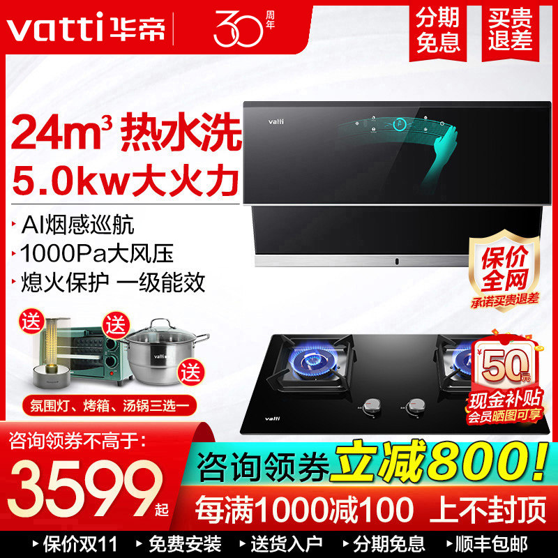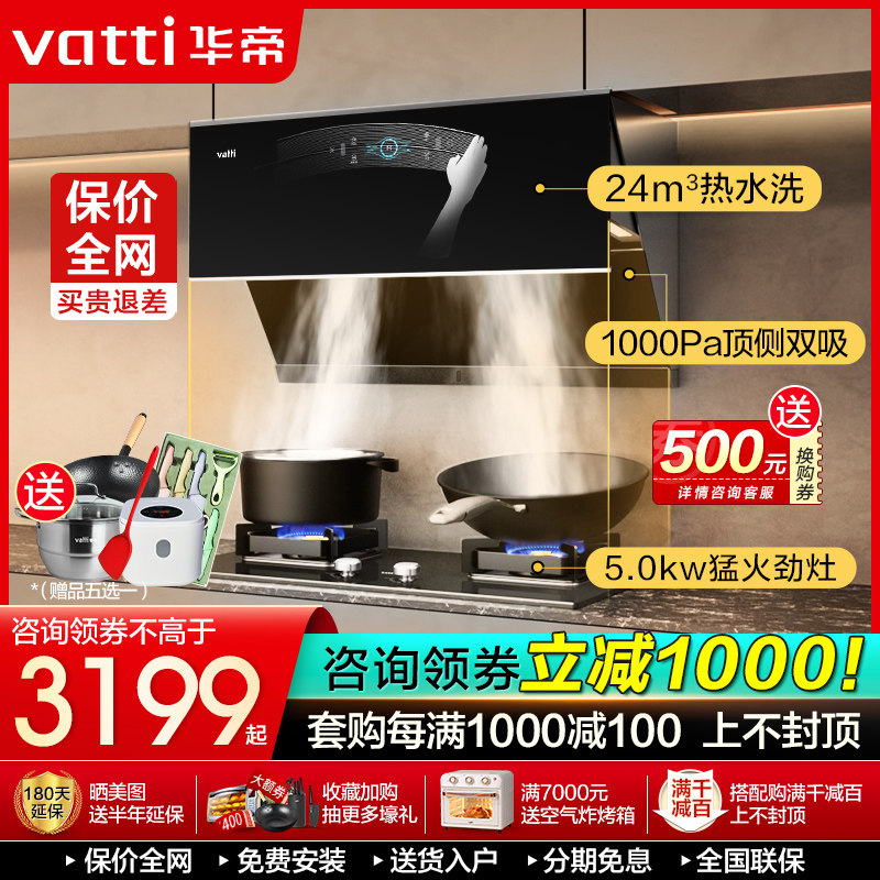券 600元销量10特价华帝A1油烟机燃气灶套餐自动洗大吸力家用烟灶套装官方旗舰店