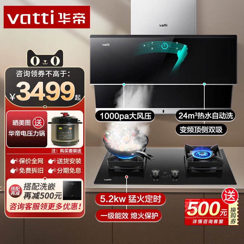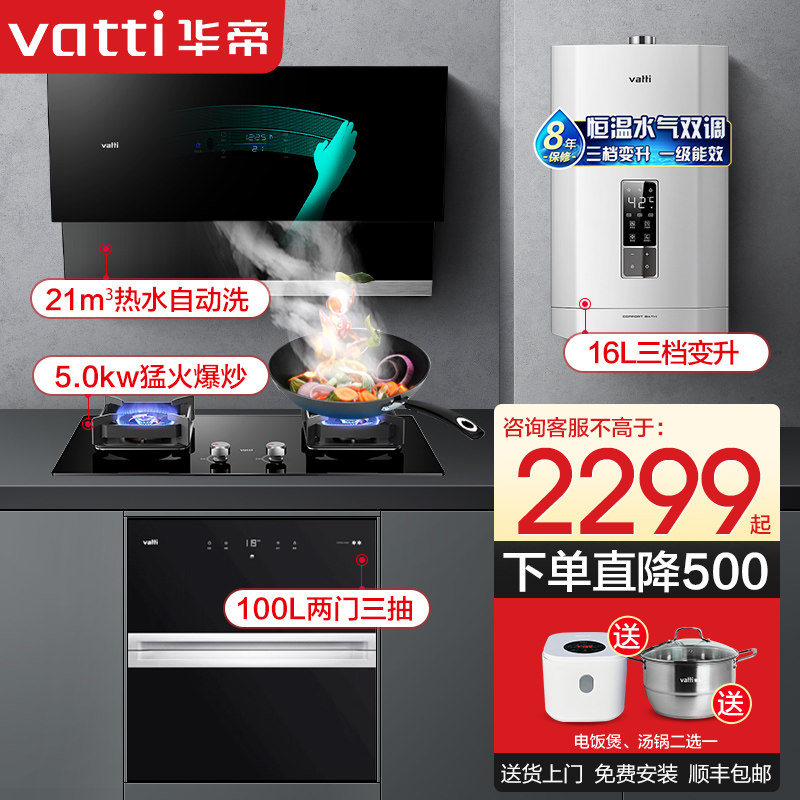 券 500元销量21华帝抽油烟机燃气灶套餐灶具热水器厨房自动清洗烟灶热消三件套装