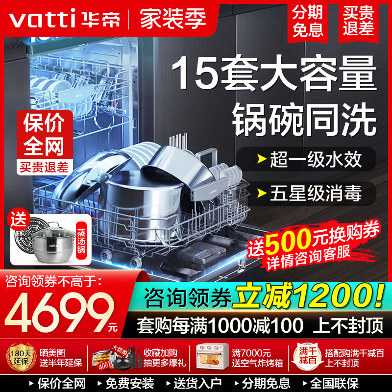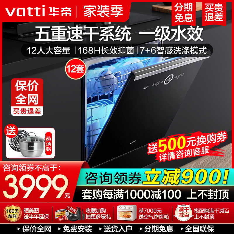 券 600元销量50华帝E7嵌入式洗碗机全自动家用烘干刷碗消毒柜家用12套碗节能智能