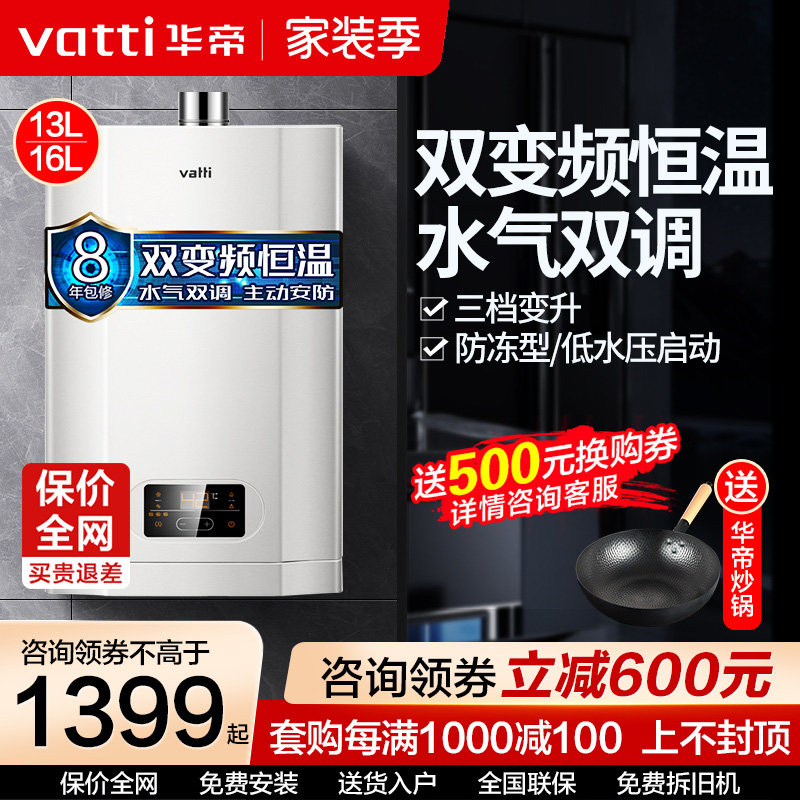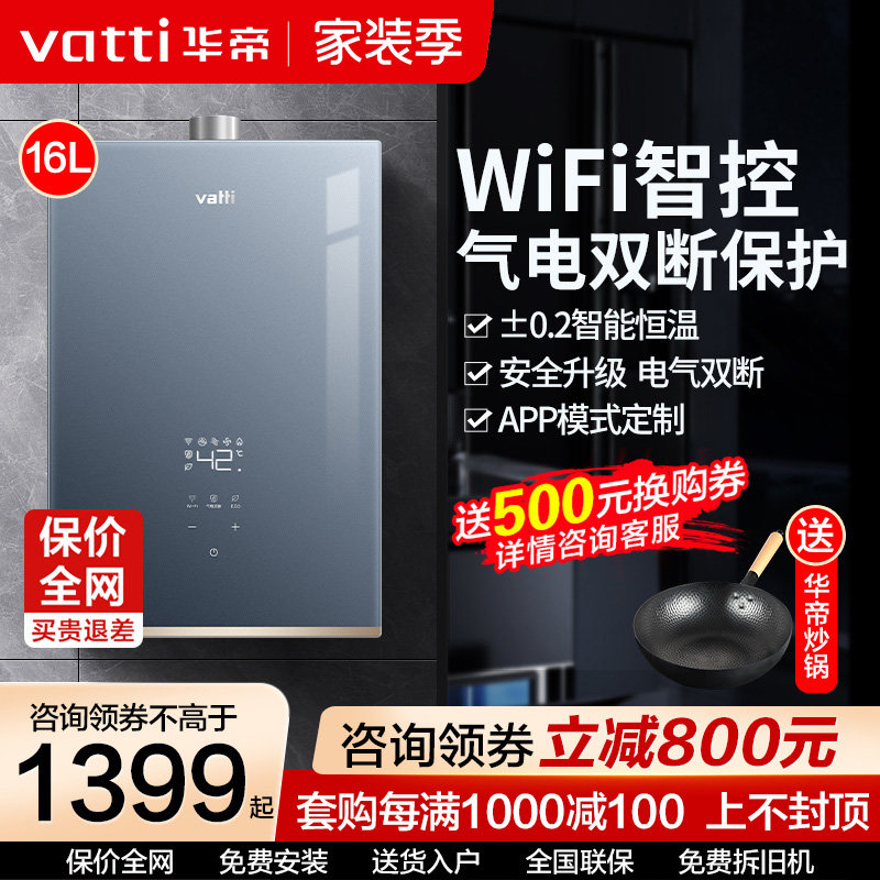 券 299元销量84华帝燃气热水器家用天然气16升13升智能恒温强排式液化气热水器