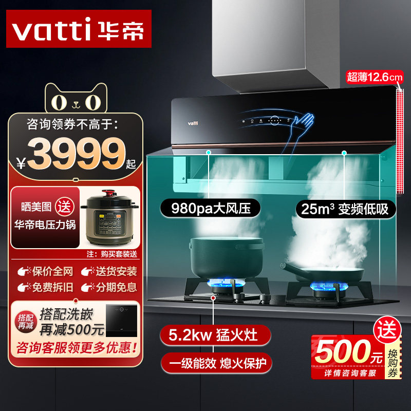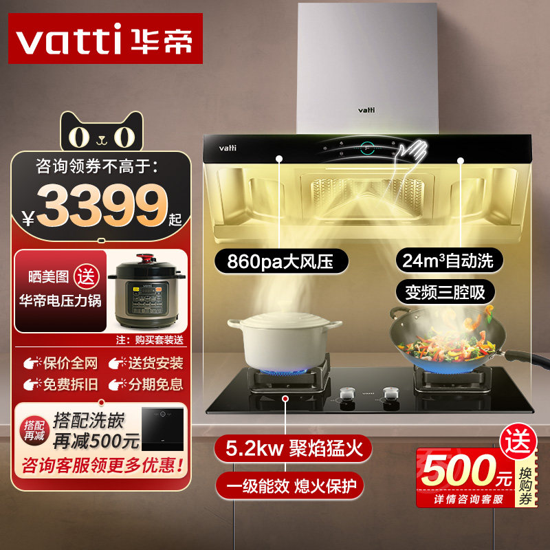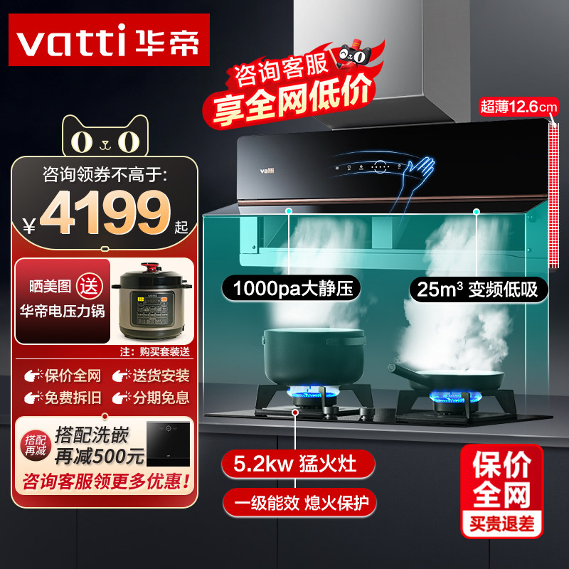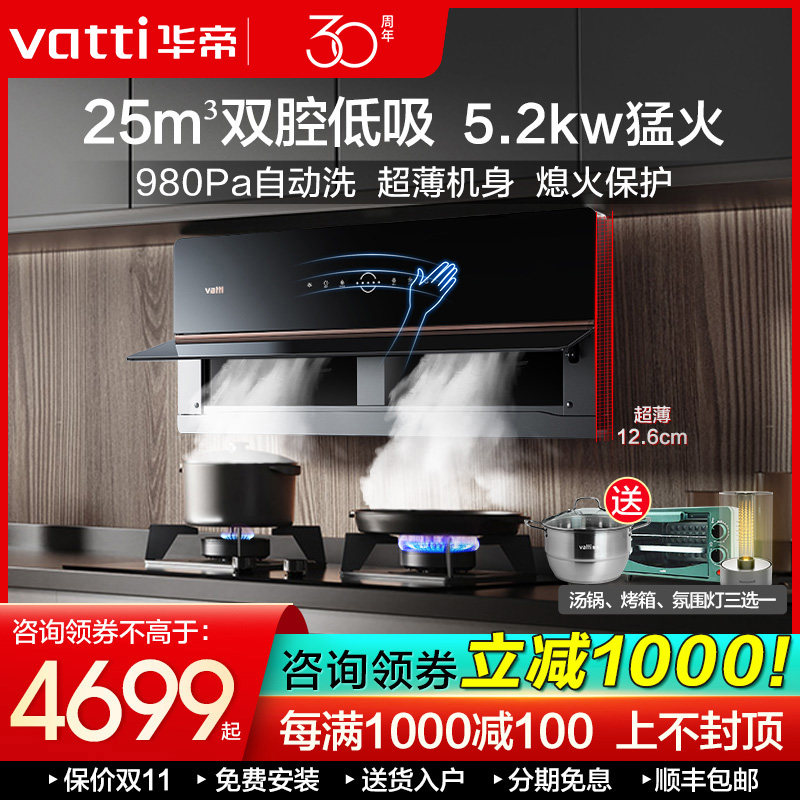 券 600元销量10特价华帝S12油烟机燃气灶套餐自动清洗顶吸跨界三腔变频烟灶套装