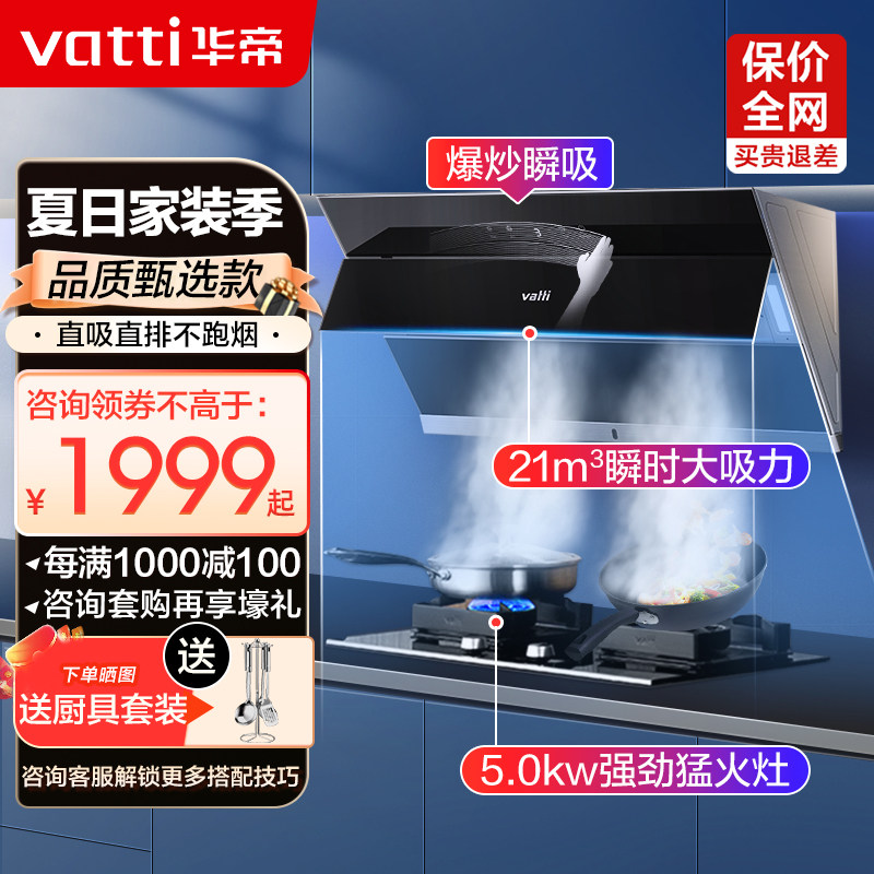 券 600元销量88特价秒杀华帝i11127S油烟机燃气灶套餐侧吸家用厨房烟机灶具套装