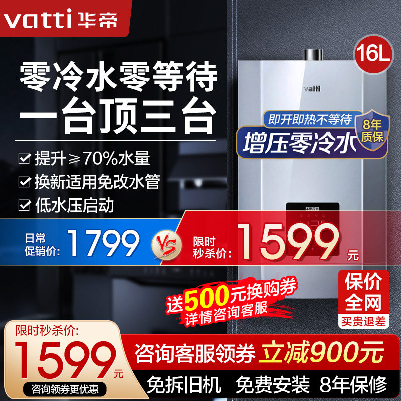 券 500元销量50华帝16升零冷水热水器i12037家用天然气即热恒温强排式燃气热水器