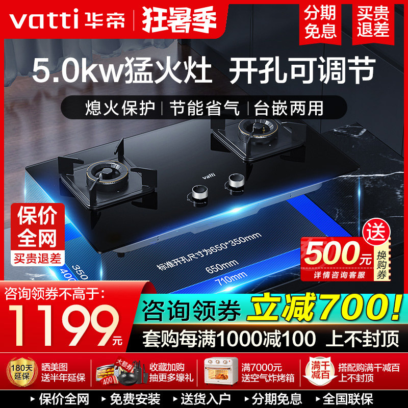 券 300元销量100华帝燃气灶i10071B煤气灶双灶家用天然气嵌入式可调节官方旗舰店