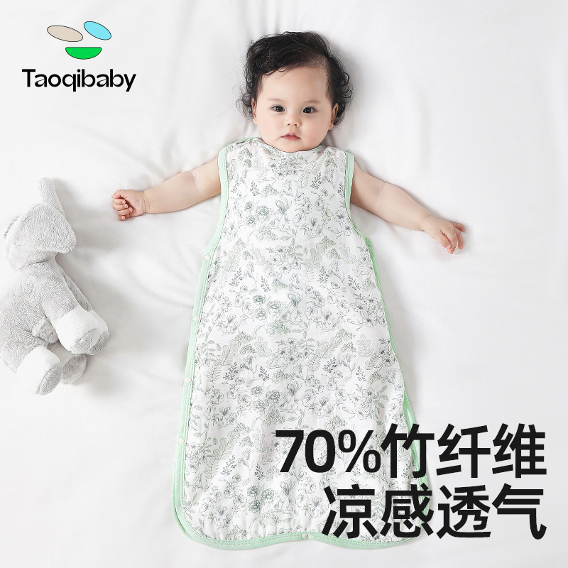 券 10元销量500无袖睡袋婴儿夏季背心式竹棉纱布宝宝纽扣薄款儿童护肚防踢被神器