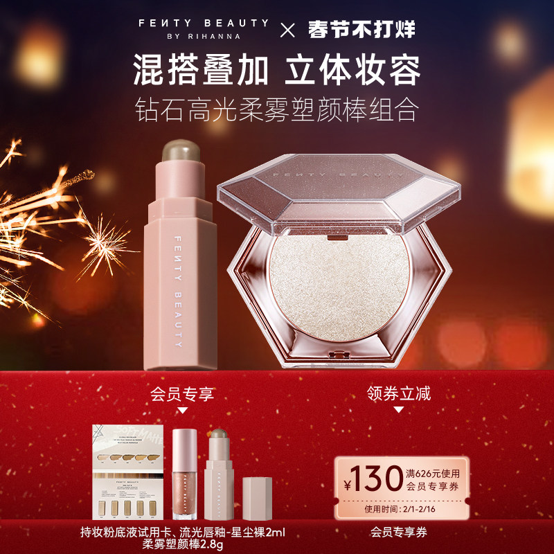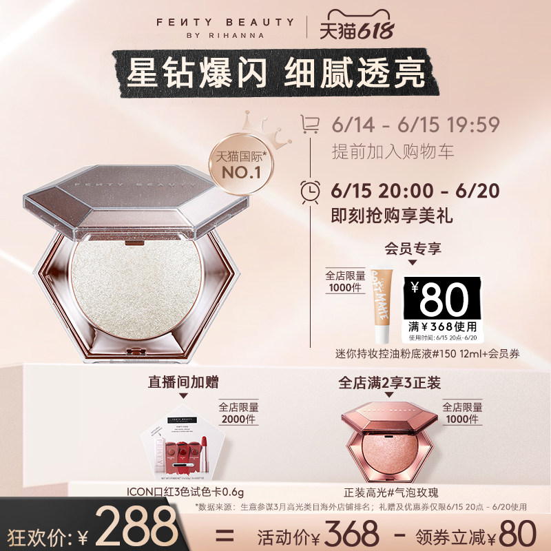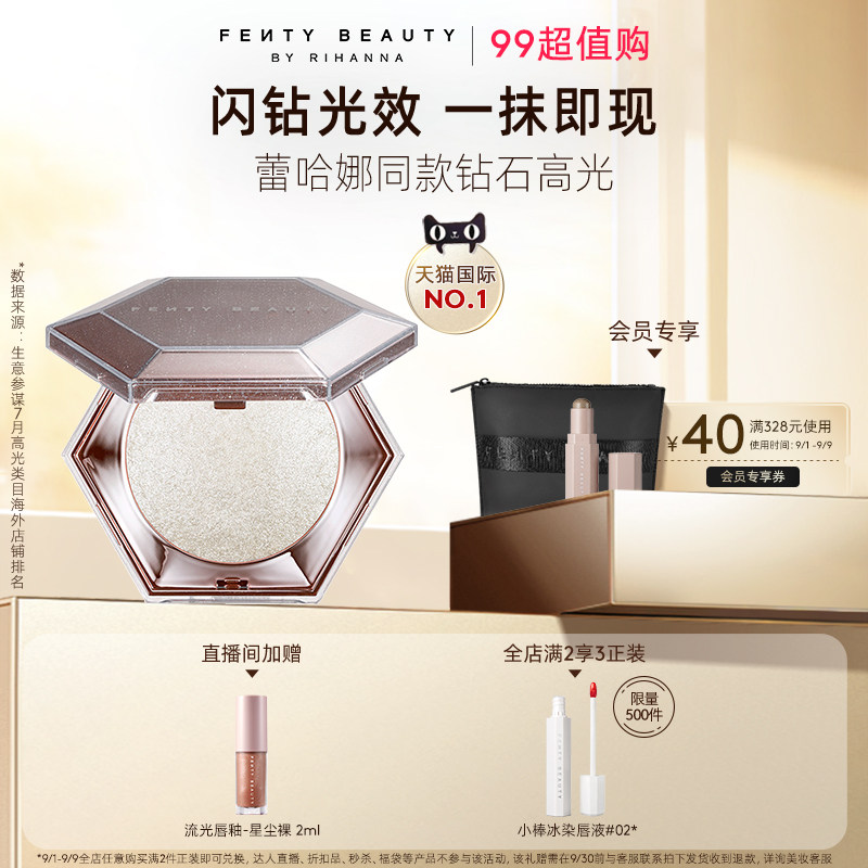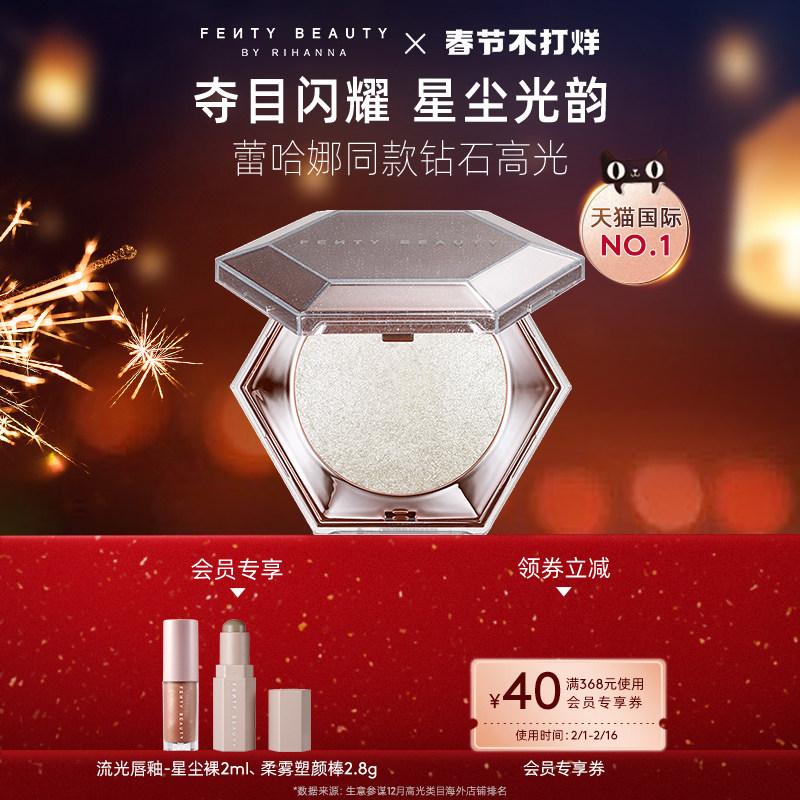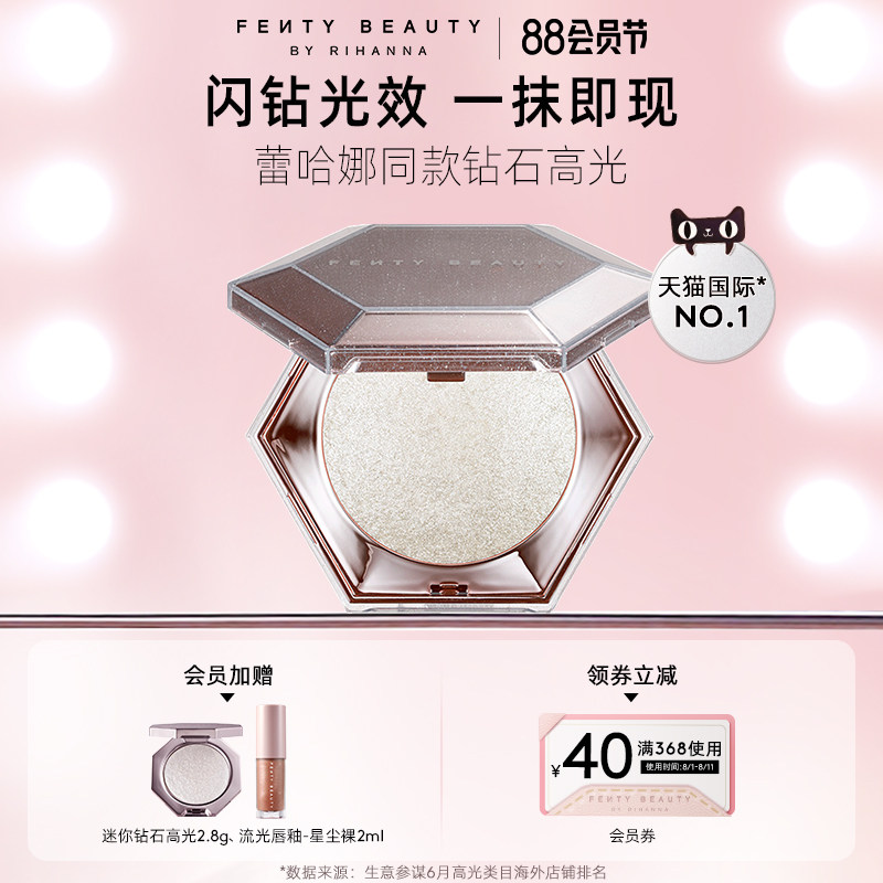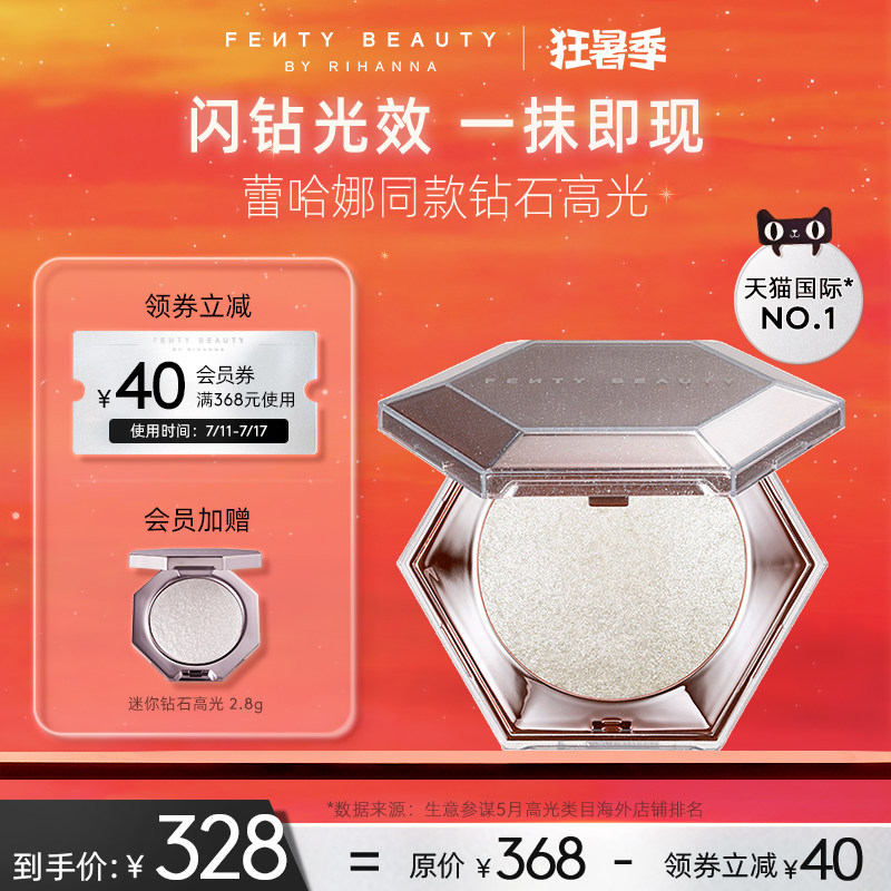 券 40元销量500【狂暑季】FentyBeauty蕾哈娜钻石高光粉饼钻感爆闪眼影提亮