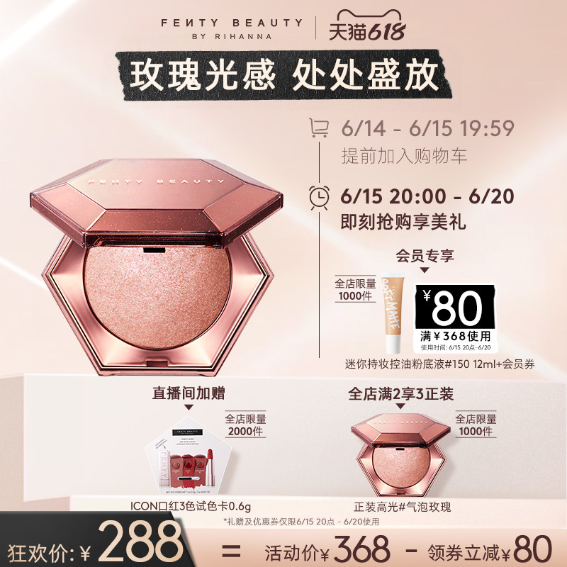 券 85元销量700【618狂欢】FentyBeauty蕾哈娜气泡玫瑰高光粉饼爆闪脸部提亮立体