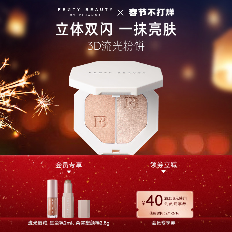 券 40元销量53【春节不打烊】FentyBeauty蕾哈娜电光杀手锏粉饼单双色高光珠光