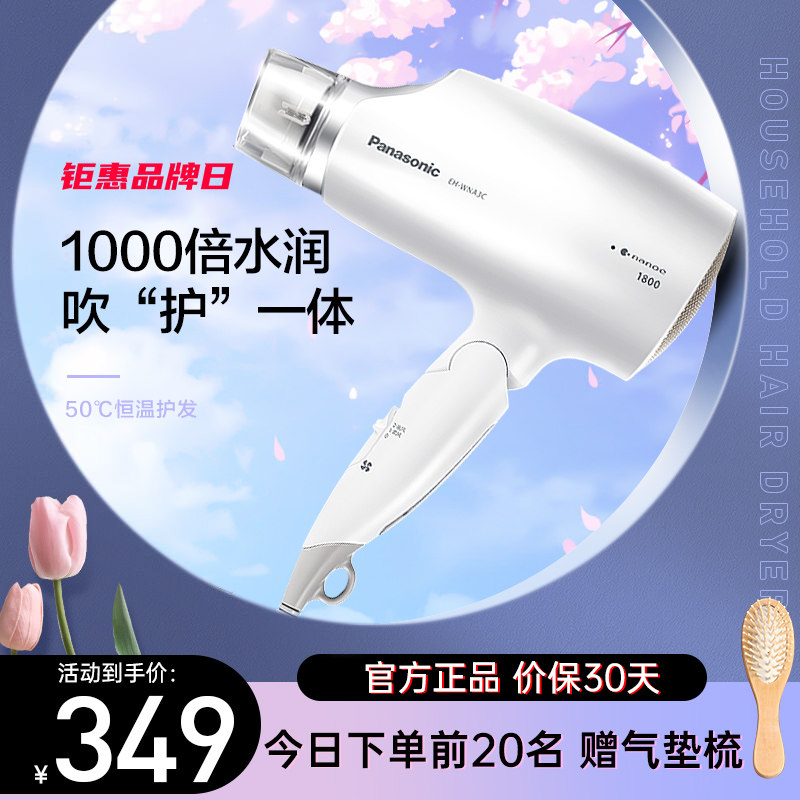 券 50元销量300松下吹风机家用大风力负离子护发吹风筒电吹风大功率速干高速吹风