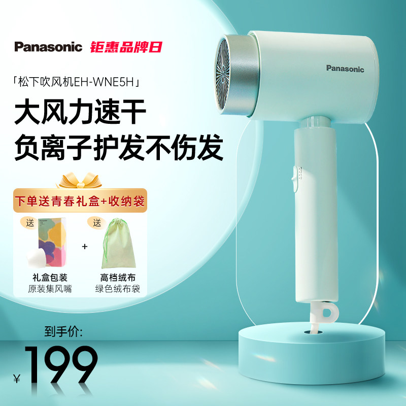 券 260元销量100松下吹风机家用大风力负离子护发吹风筒电吹风大功率速干高速吹风