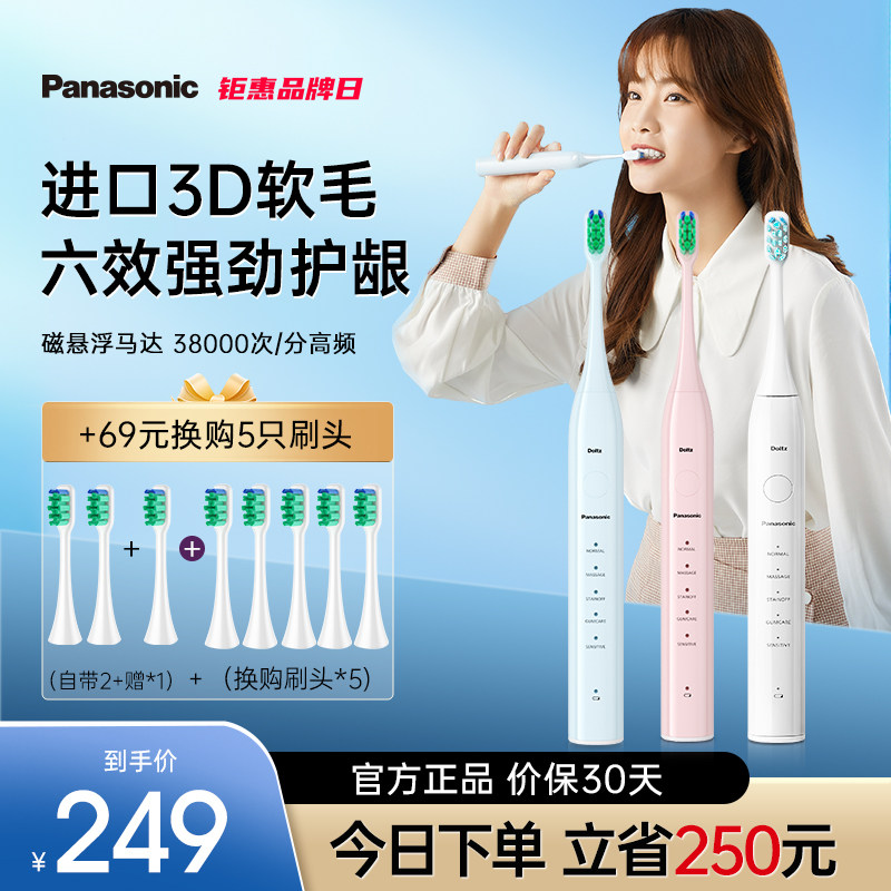 券 30元销量32松下电动牙刷全自动成人软毛超声波男女情侣款套装官方旗舰店DC01